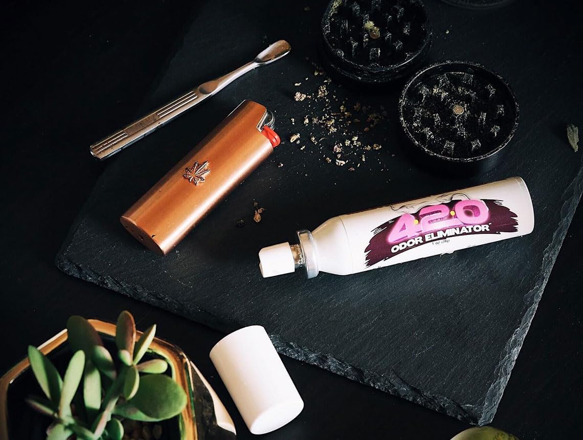 The 420 Odor Eliminator Spray neutralizes smoke, pet, and food odors with a fast-acting formula made from natural extracts and essential oils. Each compact bottle delivers a fresh “New Car Blue” scent that’s clean and powerful—without being overpowering. Trusted by odor-conscious users, featured by High Times.